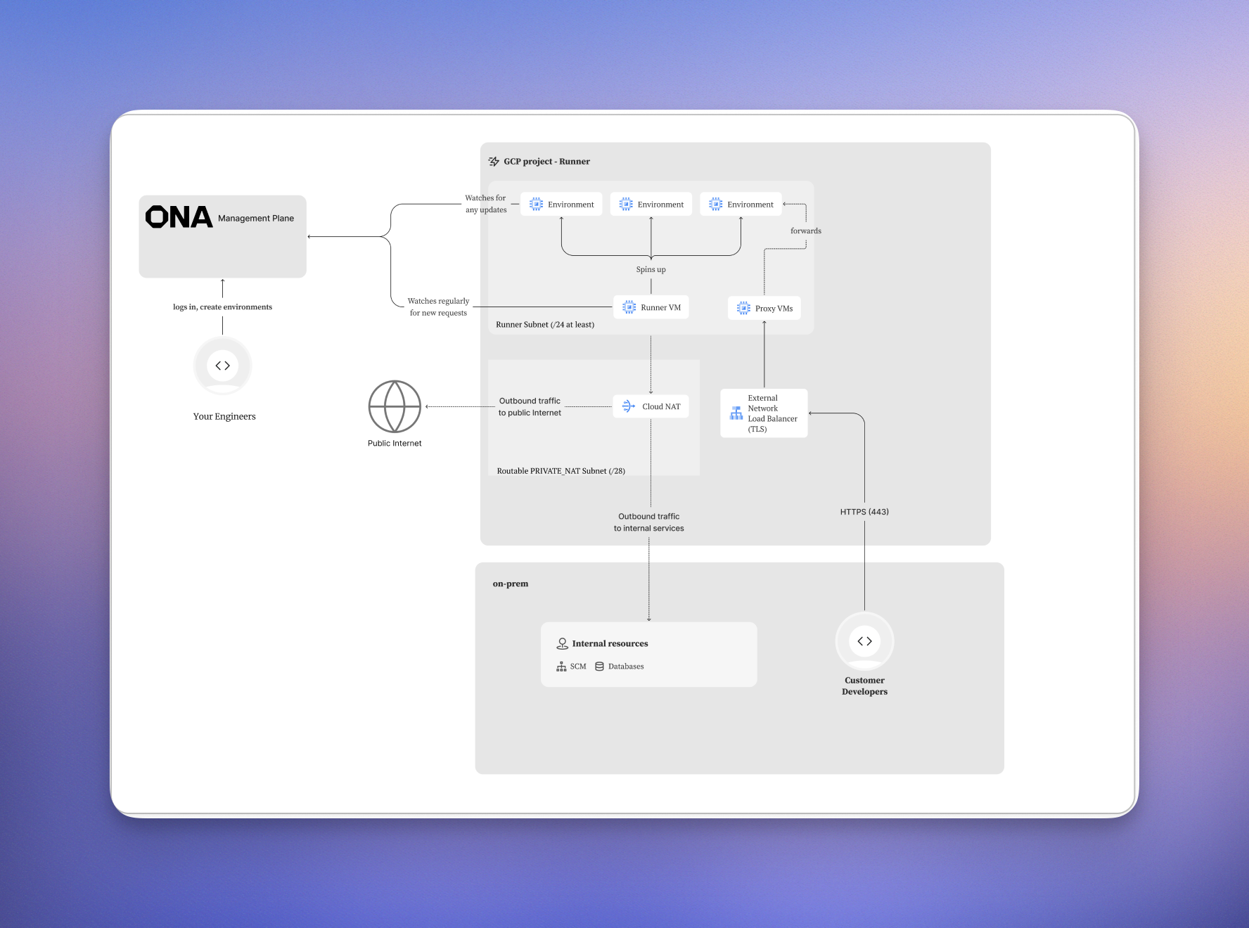 The GCP Runner supports two load balancer configurations, each designed for different network architectures and security requirements.External Load Balancer (Default)