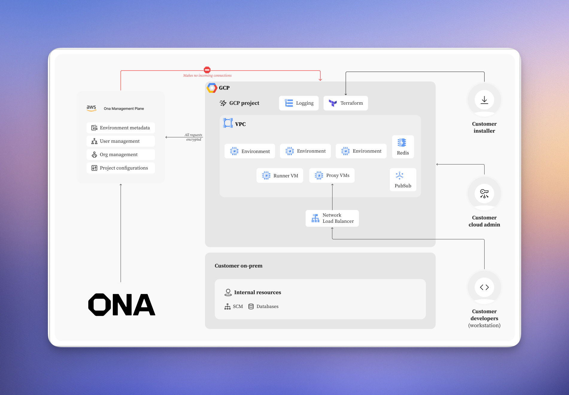 The internal load balancer configuration keeps all traffic within your VPC and corporate network, providing the highest level of security and control. This configuration is ideal for enterprise environments with existing network infrastructure and security policies. Use Cases:- Enterprise environments with strict security requirements